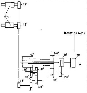 图4-4-1SXF1269A型精梳机的承卷罗拉传动机构