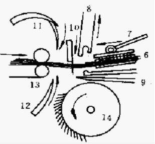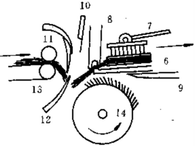 清洁机构:包括圆毛刷、道夫、斩刀、落毛箱。