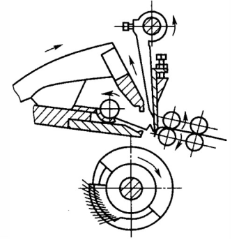 (1)喂入机构——承卷罗拉、给棉罗拉、导卷板