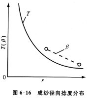 式中可以看出成纱截面内捻回角β为一常数,而捻度T则是r的函数,由外向内逐渐增加,如图6—16所示。