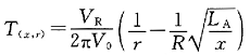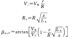 图中:x为纱体任一截面与纱梢(尖端)的距离;Rx为距离为J处的纱尾截面半径;r为距离为x处的纱尾任一截面的半径;R为成纱半径;Vr为纱体圆周速度。
