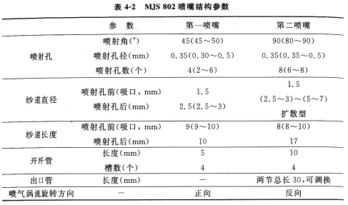 ,以保证旋转涡流的完整。新的喷嘴设计中,第二喷嘴后也有开纤管和尾部出气管,都设计成分离式,可以更换。 <