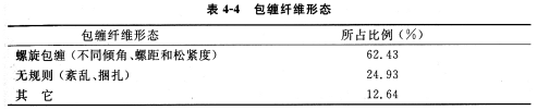 采用示踪纤维法对包缠纤维的形态进行分折,它们的形态及所占比例如表4-4所示。