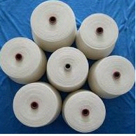 喷气纺纱加捻的原理属于包缠纺纱的范畴,纱芯部分的纤维基本平行伸直,而外表则形成纤维对纱芯的包缠,两个喷嘴的回转气流方向相反,使得成纱的包缠纤维数达到30%左右,包缠纤维数量越多,纱芯纤维数量就越少,纺出纱的强力也就越大。实践证明,喷气纺加工粗号纱的强力明显低,而生产细号纱时,包缠纤维占的比例要比粗号纱多得多,因此成纱强力高。