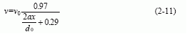 由于射流与周围静止空气的不断交换动量,核心区逐渐缩小,混合区逐渐扩大,到达射流散射段。核心区长度为: