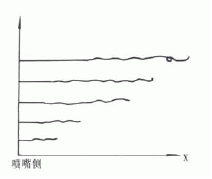 扩散、涡流和脉动,就必然使刚度很小的柔性丝线产生变形,变形的一点又要传递到另一点,最后便形成了有一定波动的漂移,且头端的漂移要大于丝身,丝线最挺直的地方在距喷嘴口最近处,即:离喷嘴口越远,丝线的漂移越严重。丝线线密度不均匀、捻度不均匀和毛羽不均匀会使漂移加剧。因此,喷气引纬必须精心调节射流中心运动轨迹,提高纬丝的质量,从而保证喷气引纬顺利进行。辅助喷嘴按喷气引纬需要补充的气