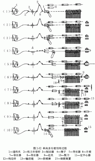 单向多片梭引纬过程如图2-32所示。