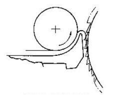⒉自由分梳 自由分梳作用发生在刺辊与分梳板之间,当刺辊带着纤维经过分梳板时,纤维尾端从锯齿间滑过,使位于刺辊纤维层表面,在握持分梳时受到较弱梳理作用的纤维束、小棉块得到分梳,从而减少了进入锡林盖板工作区的纤维束和棉束长度,提高了纤维的分离程度,为锡林盖板工作区的细致分梳创造了有利条件,所以该分梳也被称为预分梳。