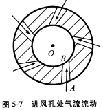 气流在进风孔内的流动视为管道流动,用柏努利方程求得: