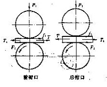 由以上分析可知,前后钳口的实际握持力分别为(F1-f1)及(F2+f2)。因此欲使前后钳口同样达到与牵伸力相适应的握持力,则F1>F2,故前皮辊上的压力P1应大于后皮辊上的压力P2。
