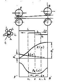 由于牵伸区内纵向摩擦力界强度分布为FM(x),在任一截面x上,浮游纤维lf的微小片段dx受到周围纤维的摩擦力总和为FM(x)dx;由于牵伸区内快慢纤维的数量分布,慢速纤维对浮游纤维lf的接触机率为K(x)/[k(x)+K(x)],快速纤维对它的接触机率为k(x)/[k(x)+K(x)]。则快速纤维对浮游纤维的引导力为: