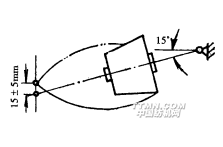 通常筒子处于平置的工作状态,当退绕点位于筒子圆锥表面下半部分时,由于纱线自重的作用纱线比较容易抛离筒子表面,从而摩擦纱段较短,纱线的退绕张力较小。反之,当退绕点位于上半部分时,则纱线退绕张力较大。为减少这种张力差异,在筒子架的安装保养工作中,规定筒子锭座的中心线应通过导纱孔垂直下方15±5mm处,如图2-14所示。