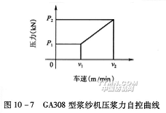 当机器运行过程,压浆辊的压力随着车速变化而作线性变化。其自控曲线及数据如图10—7所示。