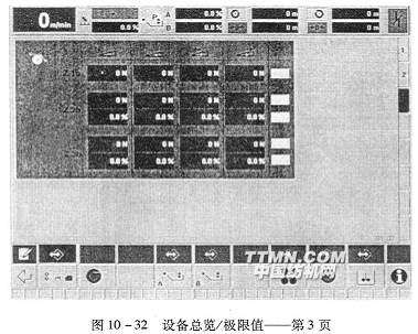 通过触摸数码索引键2、3调出设备总览/极限值画面的第2页、第3页,如图10—31和图10—32所示。