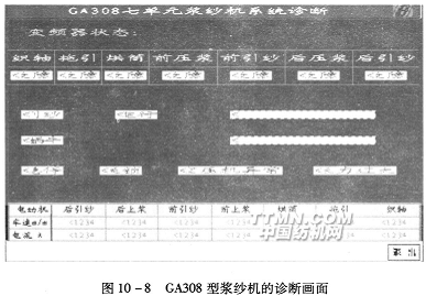此画面可以显示当前各部分电动机是否正常工作、运行状态及故障原因,不能正常开车时可查看。