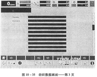 通过触摸数码索引键可调出纺织数据画面的第3页,如图10—35所示。