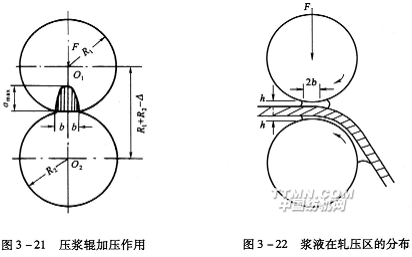 即平均压强与压浆力的平方根成正比。也就是说,当压浆力增加时,尽管挤压宽度增大,但压强还是增加的。故常用增减压浆力来调节上浆率的大小。