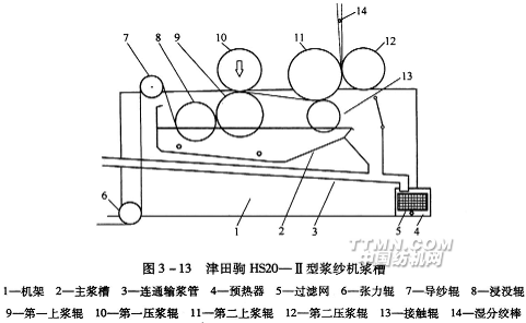 国内使用较多的津田驹HS20一Ⅱ型浆纱机的浆槽如图3—13所示。