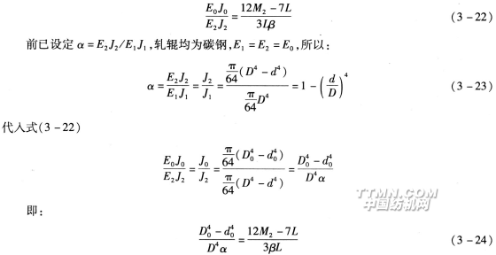 联解式(3—24)、式(3—25)可求得α值和β值,再代入式(3—23)求得中固辊的内径d。