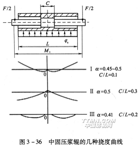 α和C/L在不同值组合下,中固辊有不同的挠度曲线,图3—36中表示三种典型情况。
