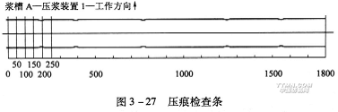 在压印纸上注明前进方向、浆槽和压浆装置的号码。每隔5cm测量一下压痕的宽度,将测量值填入一个图表,如图3—28所示。