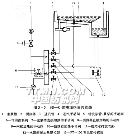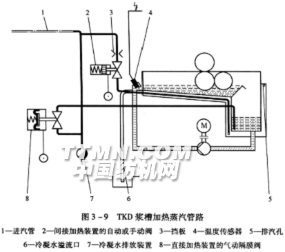 浆槽中浆液由蒸汽加热,如图3—5所示,包括两个系统。