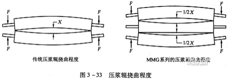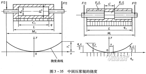 根据式(3—17)、式(3—18)、式(3-20)、式(3—21),上轧辊,即中固压浆辊的最大挠度: