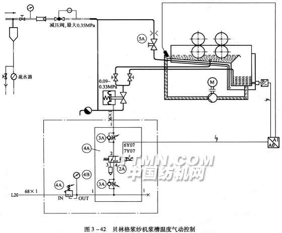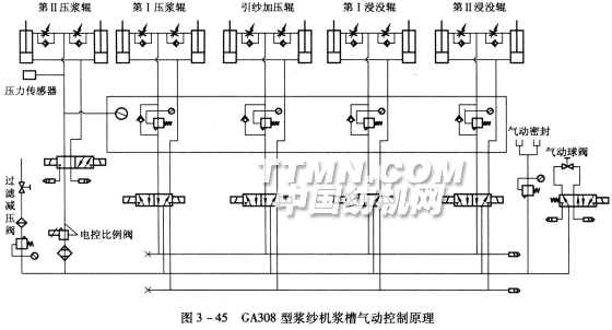 浆纱机的气动控制装置中浆槽是主要部分,气路也最复杂。