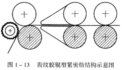 机械集聚型紧密纺系统的结构特征是,在纤维集聚区内没有任何气流集聚元件,仅具有机械集聚元件。按照机械集聚元件的特征结构,机械集聚型紧密纺系统目前还可以进一步分为三种类型:第一种是集合器集聚型紧密纺系统;第二种是齿纹胶辊集聚型紧密纺系统;第三种是齿纹胶圈集聚型紧密纺系统。集合器型紧密纺系统的主要结构特点是,在纤维集聚区内加装特殊设计的集合器(集束器)来集聚纤维(图1—12)。齿纹胶辊型紧密纺系统的主要结构特点是,在牵伸区前依靠专门设计的齿纹胶辊(集聚胶辊)来集聚纤维(