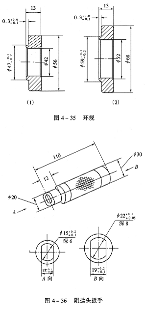 主要专用工具有弹簧测力器(图4—31)、测力表(测克计)(图4—32)、防转扳手(图4—33)、塞尺(图4—34)、环规(图4̵