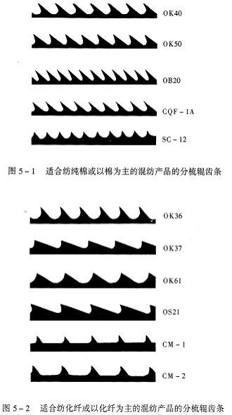 为了适纺不同性质的原料,分梳辊的齿条也就设计制造出不同的型号与规格,但总起来说可分成两大类。