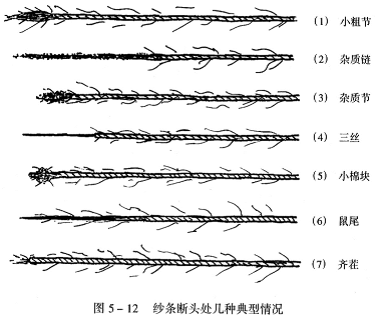 (1)小粗节:纱条断头以后,纱尾末端总留有一个小粗