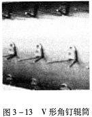 (2)开棉打手:FA113系列单轴流开棉机的开棉打手均为直径750mm的螺旋V形角钉辊筒(图3—13),FA113型和FA113B型的开棉打手由变频电动机通过窄V带传动,转速可根据原棉情况和工艺要求在控制面板上分10挡设定,以480r/min为最低转速,每档转速增加48r/min;FA113A型和FA113C型的开棉打手也为窄V带传动,转速可根据原棉情况和工艺要求通过更换带轮进行调节,分为450r/min、500r/min、550r/min、600r/min共四挡。