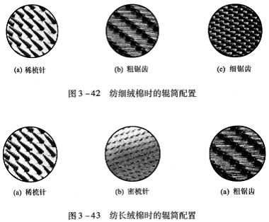 (1)四个辊筒依次为梳针[4针/(25.4mm)2]、粗锯齿