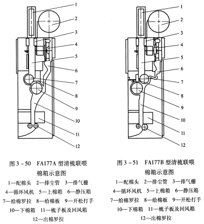 FA177系列清梳联喂棉箱共生产了FA177型、FA177A型、FA177B型三种机型,其中FA177型为早期生产的机型,数量很少,在此主要介绍FA177A型和FA177B型两种机型。FA177A型清梳联喂棉箱与FA221B型和FA223型梳棉机配套使用;FAl77B型清梳联喂棉箱与FA221D型和FA221K型梳棉机配套使用。