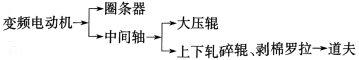 (10)活动盖板运转方向与锡林旋转方向相反,增强梳理能力,提高生条产量和质量(其他机型与之相同)。
