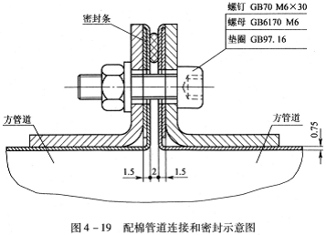 (5)圆管道连接处用捆圈固定牢,为防止连接处漏气需要用密封条(用户自备)进行密封,尤其是负压要求较高的管道,密封与固定方式如图4—18所示。