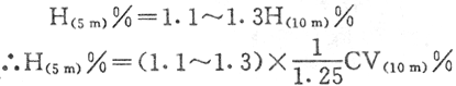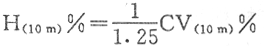 国内棉纺织厂生条重量不匀率照传统试验方法,片段长度取5m,计算H%,但亦有部分工厂取10m长度,计算CV%,为充分利用这些数据,可作如下换算: