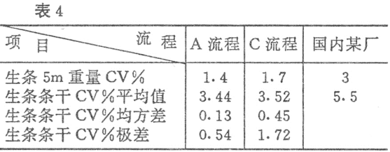 不论是引进的还是国产的清梳联设备,都需要过硬的管理去匹配,做到管好、用好、掌握好,才能充分发挥清梳联生产线的作用。同一型号的设备,在不同厂使用时,其半成品质量相差悬殊即为明证。以Rieter清梳联为例(见表4)。