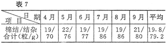 几个月来的日常试验所检测的棉结杂质如表7所示。