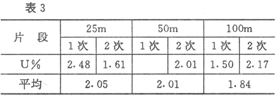 为了了解生条不同片段重量的外不匀情况,10台车同时取样,每台车各片段取3个子样,分别计算不同片段的外不匀,结果见表3。