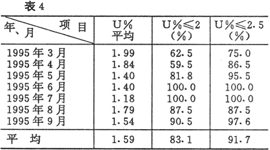 生条5m重量内不匀要求控制在2%以内,测试结果如表4所示。