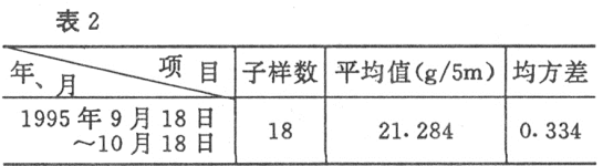 从表1可看出,生条5m重量外不匀明显优于传统工艺,U%<3的比例可达到90%以上。生条5m重偏分布情况见表2。生条干重控制在21.02g/5m±0.5g/5m,当重偏为±0.5g/5m时相当于生条5m干重的土2.5%,从9月18日开始每天测试重偏,每次取子样30个,结果列入表2。