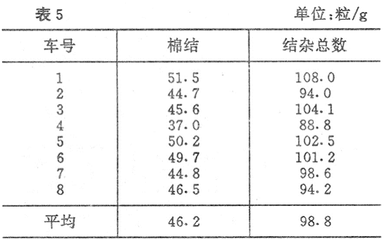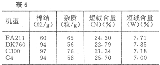 从表6看,FA211型机即本清梳联生产线,其棉结、杂质及短绒含量水平已达到了各种进口设备的水平。