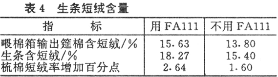自清梳联投产以来,测试生条16mm以下短绒含量大体在15.5%~18.5%之间,而梳棉机短绒增长幅度在四个百分点以内,这比预料的情况少。如流程跳过FAlll型清棉机(即不经过梳
