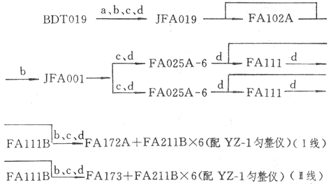 我厂一万锭技改项目设计主要产品为精梳针织和喷气织造用纱,其工艺设备经反复调研和专家论证,于1995年初最后确定采用国产清梳联设备,相应配套设备是引进精梳机、并条机(单道)和全自动络筒机,粗纱机和细纱机选用了国产新机型。这是一套以国产设备为主的清梳联生产线新配套模式,由江苏金坛纺机厂和西北机器厂合作推出,两家各提供了一条线的喂棉箱(每条线6台,均为仿德国特吕茨施勒尔FBK533型棉箱),间歇吸和滤尘系统的设计和安装由我厂负责,流程中的往复抓棉机,原计划采用国产FA006B型配套,后接受了西北机器厂转让的进口BDT01.9型抓棉机。整套清梳联设备总投资仅相当于同规模引进设备价格的四分之一,如选用国产FA006B型(郑机产)或者FA008型(金坛产)往复抓棉机,其使用功能相同,则投资更省。
