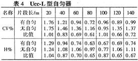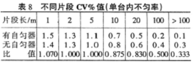长闭环自匀器一般在20m~30m片段以下,单台内不匀率有破坏作用(比值>1),混合环的交点在1m~5m以下,显然改善了短片段的不匀率。