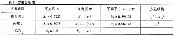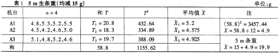在K台梳棉机上各取n段生条称重如表1,其中:K=3,n=4,N=Kn=12。为计算方便各值均减15g。
