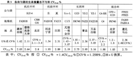 引进梳棉机和国产梳棉机采用自匀器后,清梳联生条的重量总不匀率如表9所示。