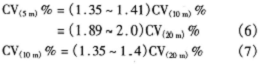 表3为30次~40次同时测定5m,10m,20m的CV%平均值。